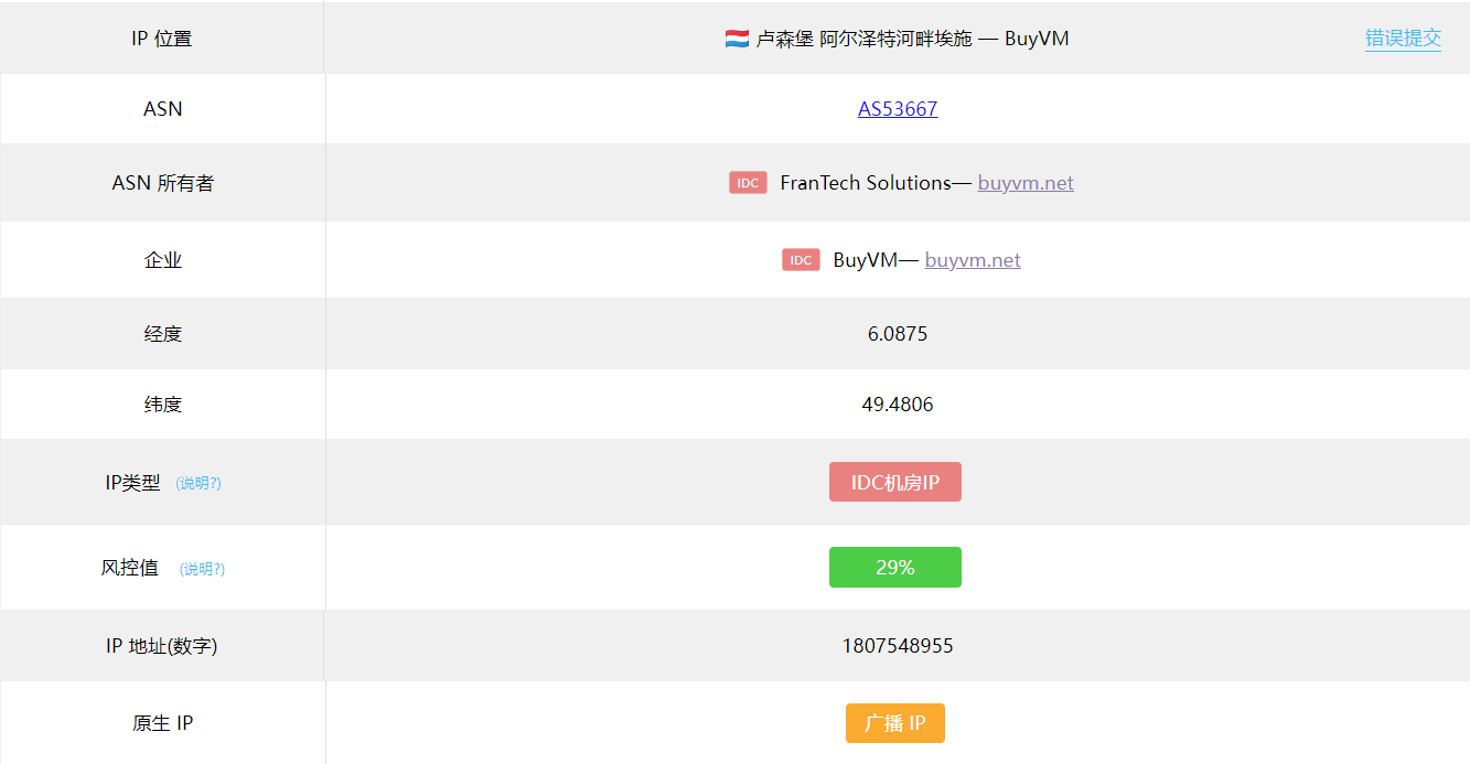 国家: LU 城市: Dudelange 服务商: AS53667 FranTech Solutions