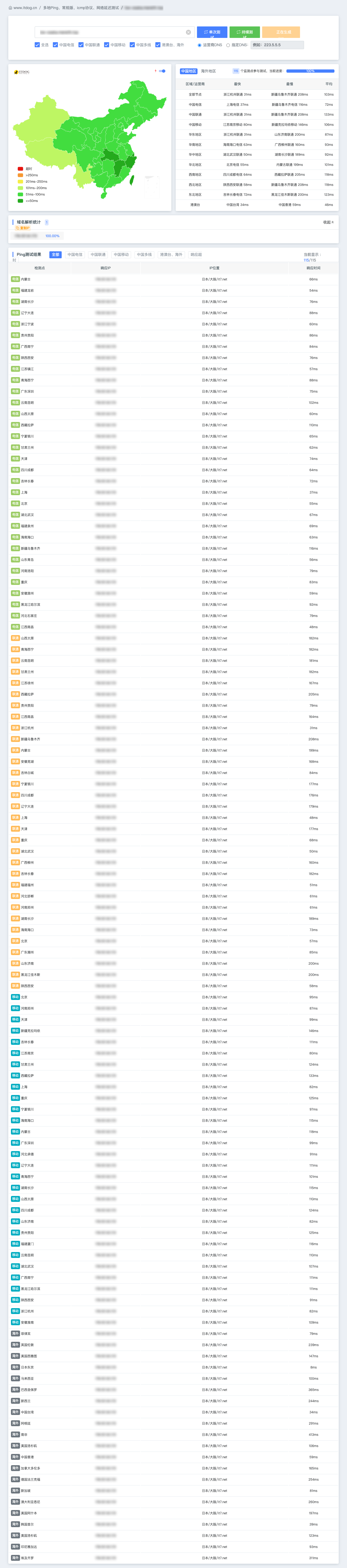 全国 ping 测试(itdog)(非高峰期)