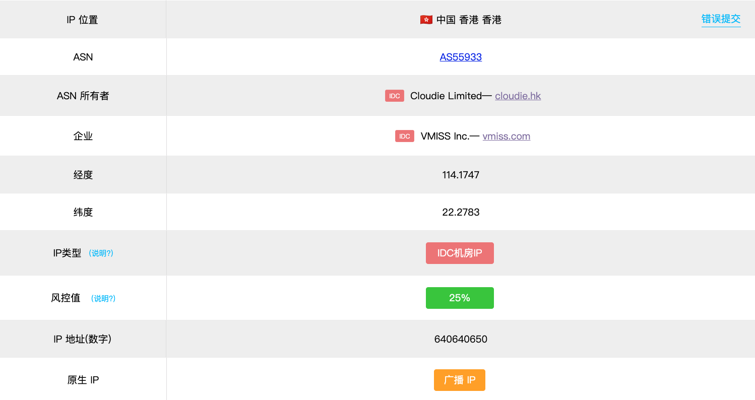 国家: HK 城市: Hong Kong 服务商: AS55933 Cloudie Limited