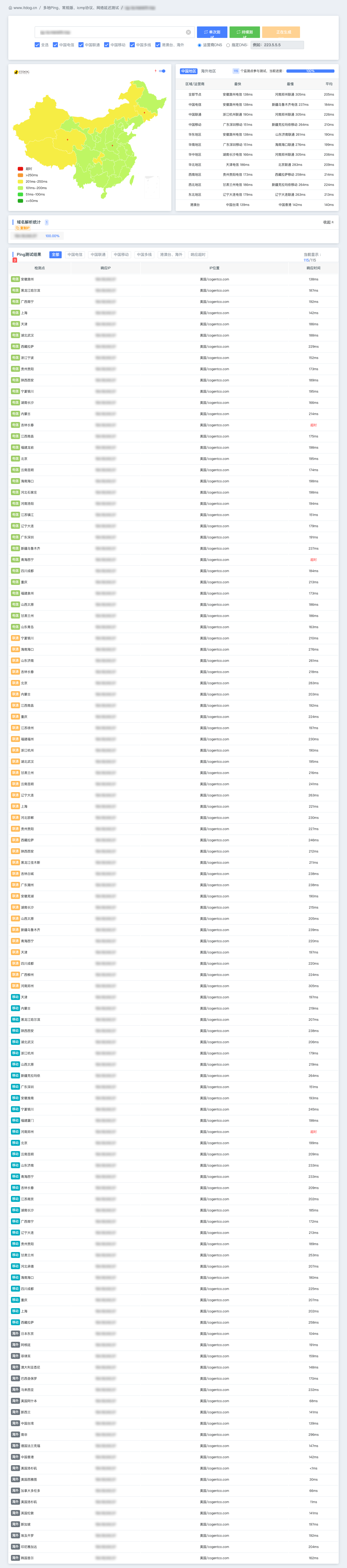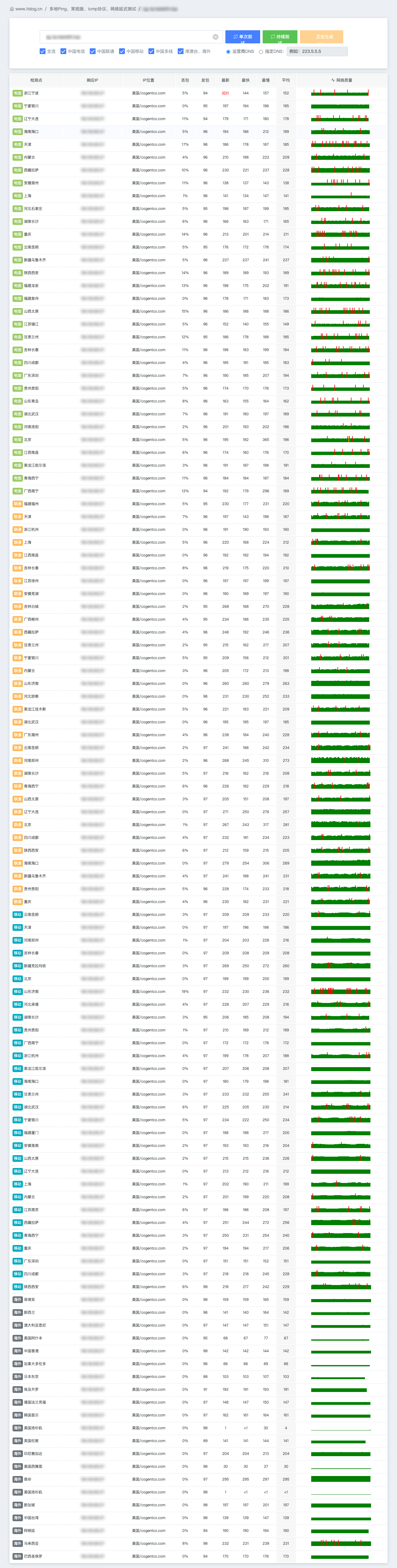 全国 ping 测试(itdog)多轮(高峰期)